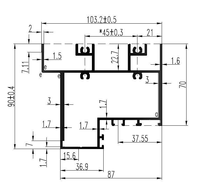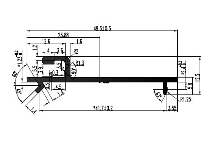 כנף צד מחוזקת לזיגוג 39-43 ממ 9200 א- 6 מ'